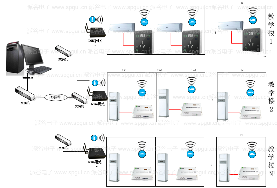 基于電力辦公區(qū) “強(qiáng)電磁干擾、多層分散布局、多品牌設(shè)備混雜” 的核心特性,最終選定廣州派谷 LoRa 通訊系列空調(diào)節(jié)能控制系統(tǒng),構(gòu)建 “終端智能控制 + LoRa 無線傳輸 + 云端平臺管理” 的三層架構(gòu),核心選型邏輯圍繞 “場景適配” 展開,而非單純追求設(shè)備參數(shù)。?